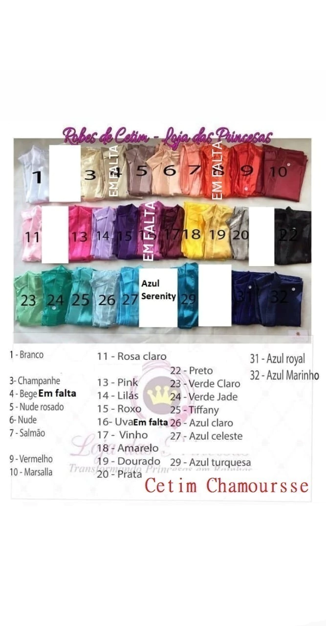 - O robe de cor clara, pode ter uma leve transparência, principalmente a cor branca.